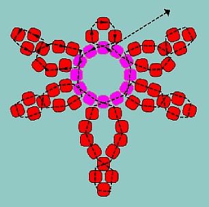Следующий этап — обводная линия, которая проходит через 6 бисеринок предыдущего ряда, см. схему 3.